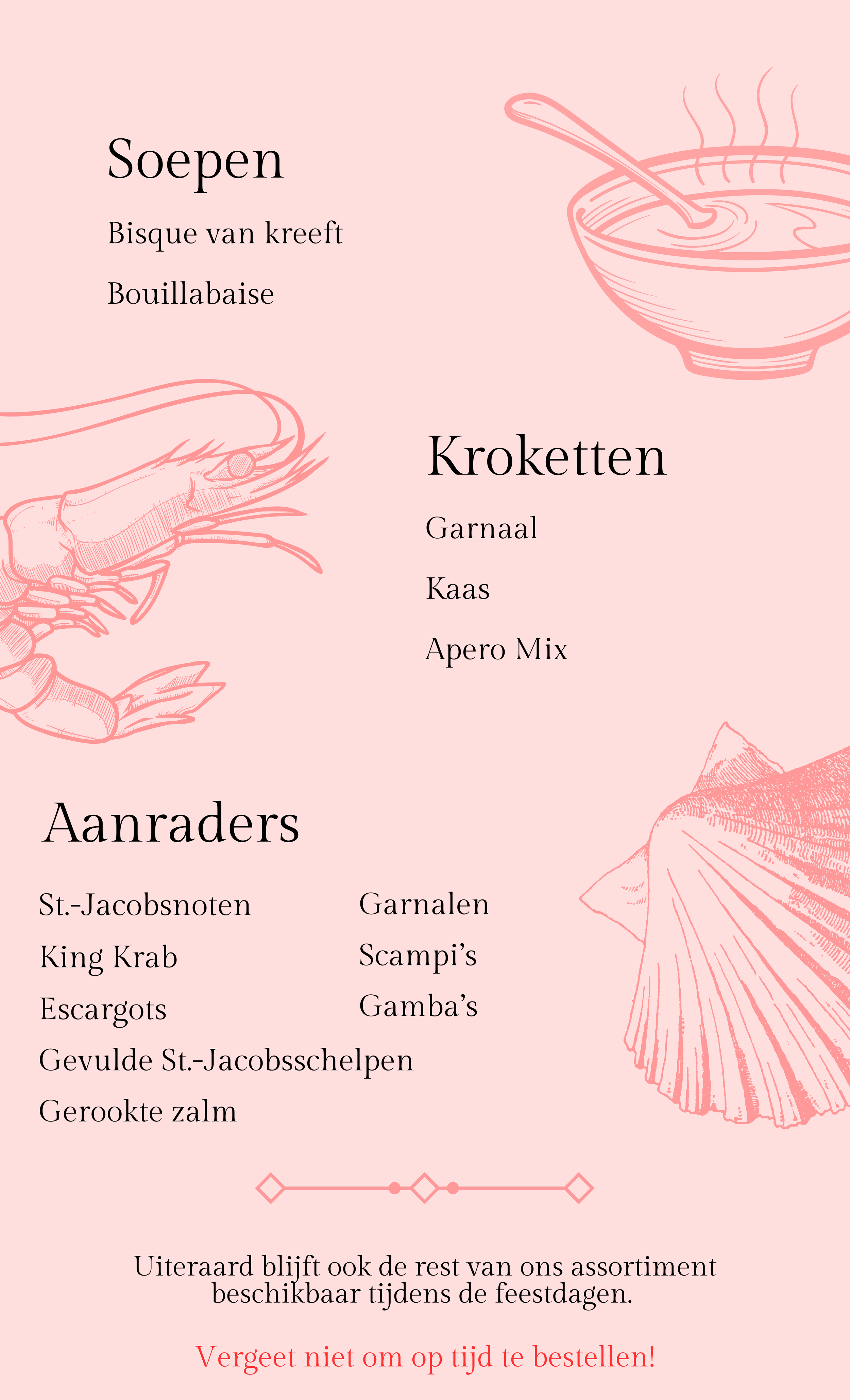 U bent tijdens de feestdagen uiteraard ook zonder bestelling altijd welkom in onze winkel, maar houd er rekening mee dat bepaalde producten uitverkocht kunnen zijn.